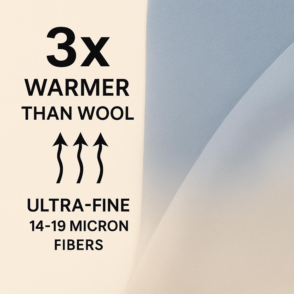 16-micron fibers are exceptionally rare and luxurious, creating an almost cloud-like feel (for comparison, human hair is about 75 microns).